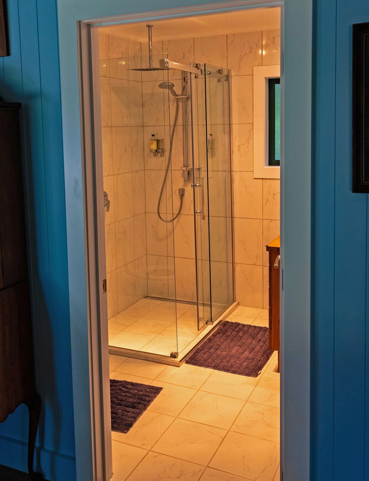 Ensuite Bathroom. Each Cottage has an Ensuite, with toilet, shower with rain head, we have great freshwater from our own private well, vanity, towels, hairdryer, and toiletries.